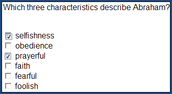 Multiple select problems ask students to select all the possible correct answers in a list. Students can select none, some, or all of the answers.