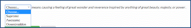 Text multiple choice problems look like fill-in-the-blank problems, except students select the correct answer from a list of possible answers.