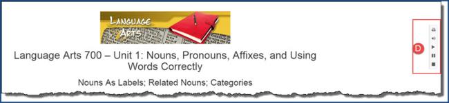 On the right side of the lesson are several tools (item D below). These tools allow you to: