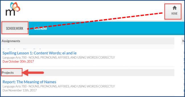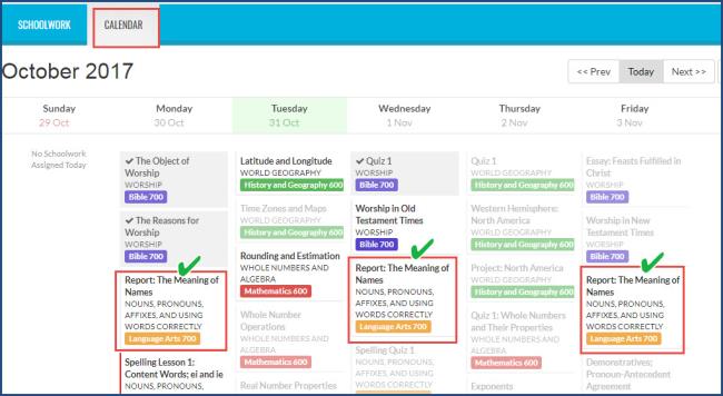 The project now appears as Completed (ü) on the Calendar on the project start date and is sent to your teacher for grading. |